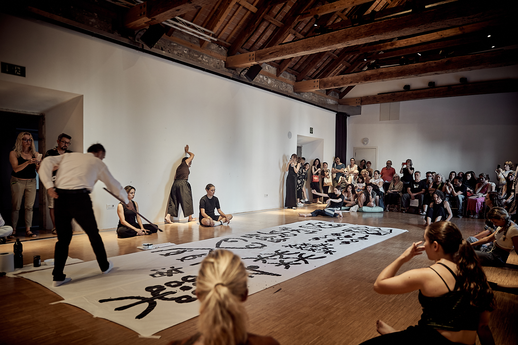 Partint del condicionant de l’expressió gràfica i pictòrica a partir de la cal·ligrafia de l’artista Qi luo de l’Acadèmia de les Belles Arts de la Xina, qui a través del moviment pintarà des de la seva ànima icones, motius, llegendes i poemaris diversos que seran al seu torn interpretats pels ballarins de l’Escola Municipal de Dansa de Castelldefels, els quals, des de la seva experiència, es responsabilitzaran que el públic participi, motivant una harmonia holística entre el cos i l’ànima.